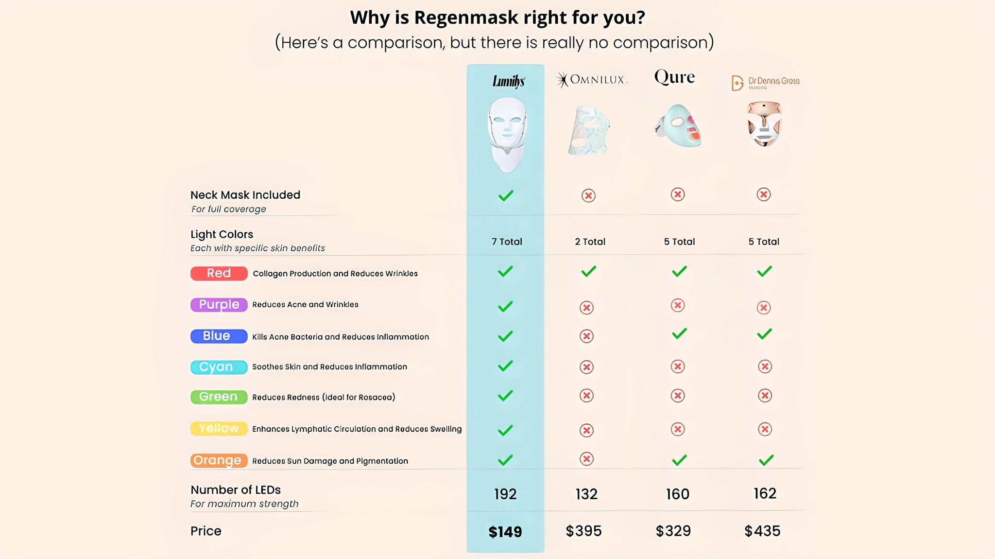 ✓ 192 clinical-grade LEDs (7 therapeutic wavelengths)